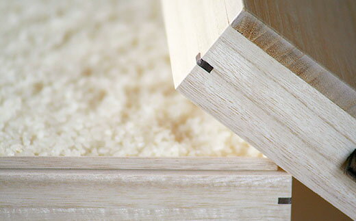 伝統的工芸品山形桐箱の職人が作る桐米びつに玄米をお入れしてお届けします。